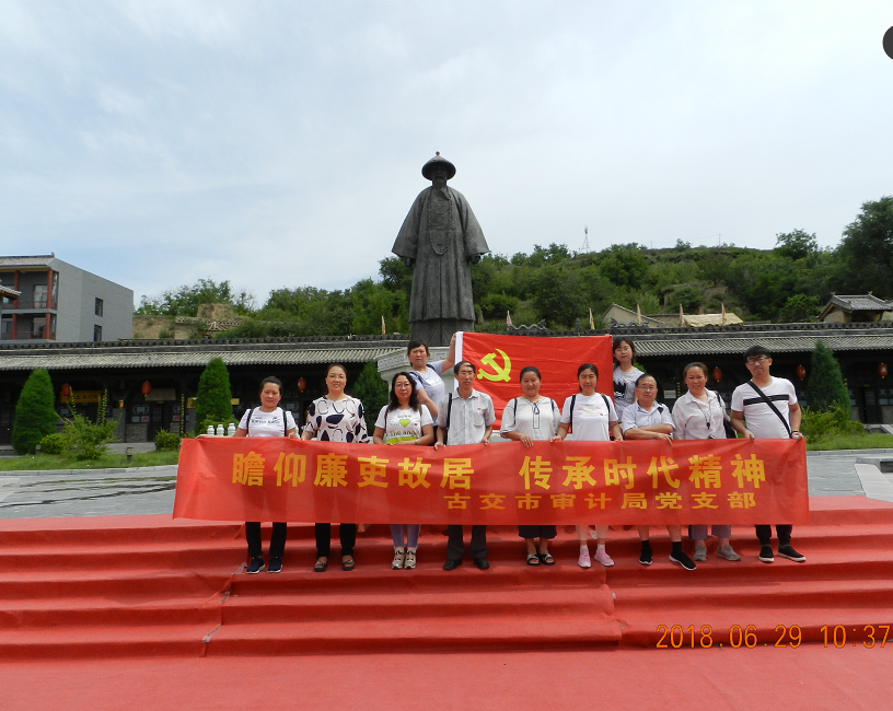 在举国上下庆祝中国共产党成立97周年之际, 为进一步加强党员党性修养,不断增强审计干部廉政意识, 6月30日上午,古交市审计局组织在职党员、入党积极分子赴于成龙廉政文化园,开展了以“瞻仰廉吏故居,传承时代精神”为主题的反腐倡廉警示教育活动。